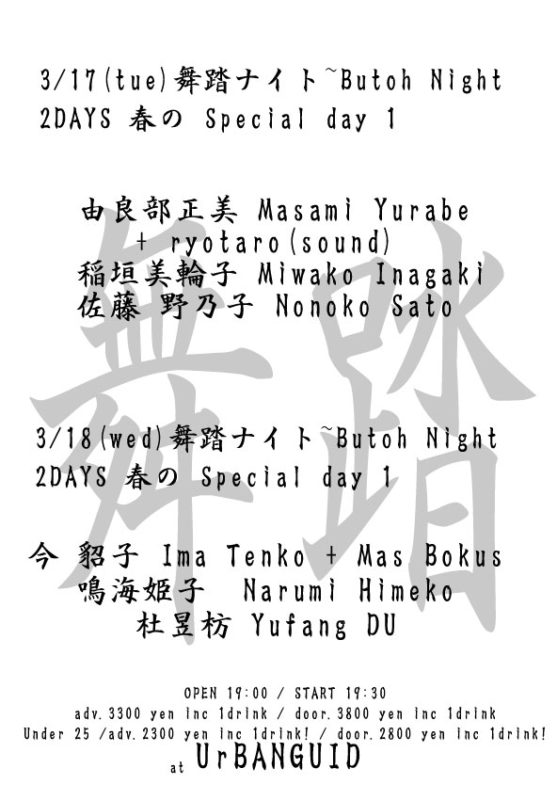 3/17 (tue) 舞踏ナイト~Butoh Night 2DAYS 春の Special day 1