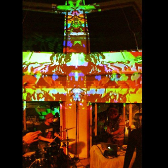 3 台のオーバーヘッドプロジェクター(OHP)と、カラーインクや水、オイル、ガラス、霧吹き、水槽のポンプなど様々な素材を操り行われる「光」によるラ イ ブパフォーマンス。その場に流れる時間のうえにイロを塗り重ねていくかのような、幻想的で刻々と変化していくイメージは、完全なアナログであり、OHP上 のアクリルプレートで即興的につくられ、そのまま壁面に拡大して投影されている。
