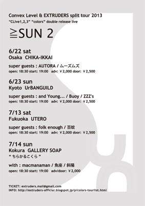 6.23 (sun) "≧SUN 2" Convex Level & EXTRUDERS split tour「colors」「CLive1,2,3」ダブル発売記念 in 京都