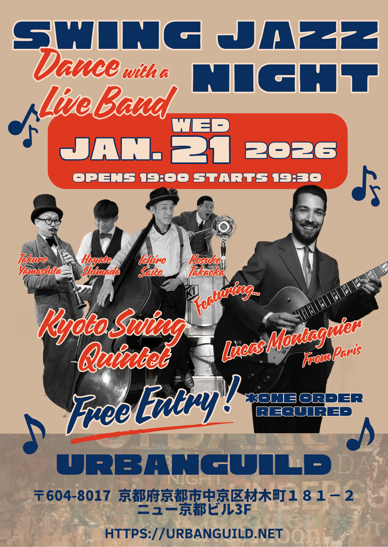 1/21(wed) Ur食堂Live!! 『SWING JAZZ NIGHT 〜Dance with a Live Baud』/ no charge, 投げ銭