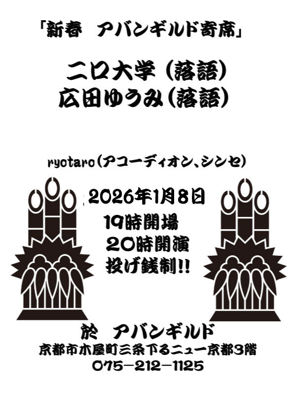 1/8 (thu) 新春アバンギルド寄席