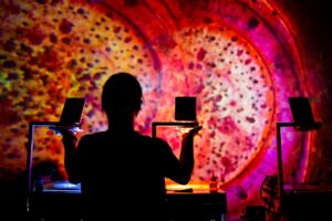 2020年からは映像や写真など、パフォーマンス以外のメディアにおける光の表現を探求するプロジェクト「光響事業」もスタート。”AMBIENT KYOTO2023″で展示された山本精一の「Silhouette」や、る鹿「体がしびれる 頭がよろこぶ」のMVなどを手がけている。
