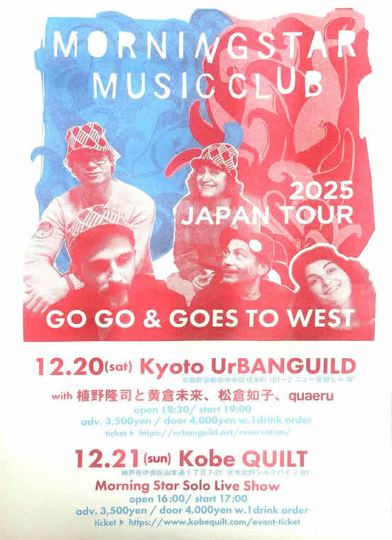 ANGEL’S EGG は、ブリストルのベースミュージックを扱うレコード店DISC SHOP ZERO店主の飯島直樹が主宰・運営していたレコード・レーベルです。同レーベルは、2020年、飯島の悼去と共に活動を休止していましたが、氏の意志を継いで、再び素晴らしいミュージシャン、音楽を紹介する形で復活しました。今回来日を果たすMORNING STAR MUSIC CLUBは、氏のスタート地点でもあるMOON FLOWERSのジェシーらが参加したバンドであり、それら友情の新たな展開とも言えるものです。