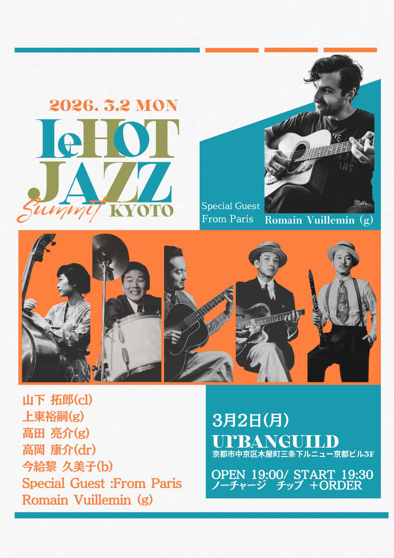 関西、関東で活躍するクラシックスタイルのミュージシャンに加え、本場フランスよりジプシージャズギタリストのRomain Vuilleminをスペシャルゲストに迎えた豪華セットでお送りします!